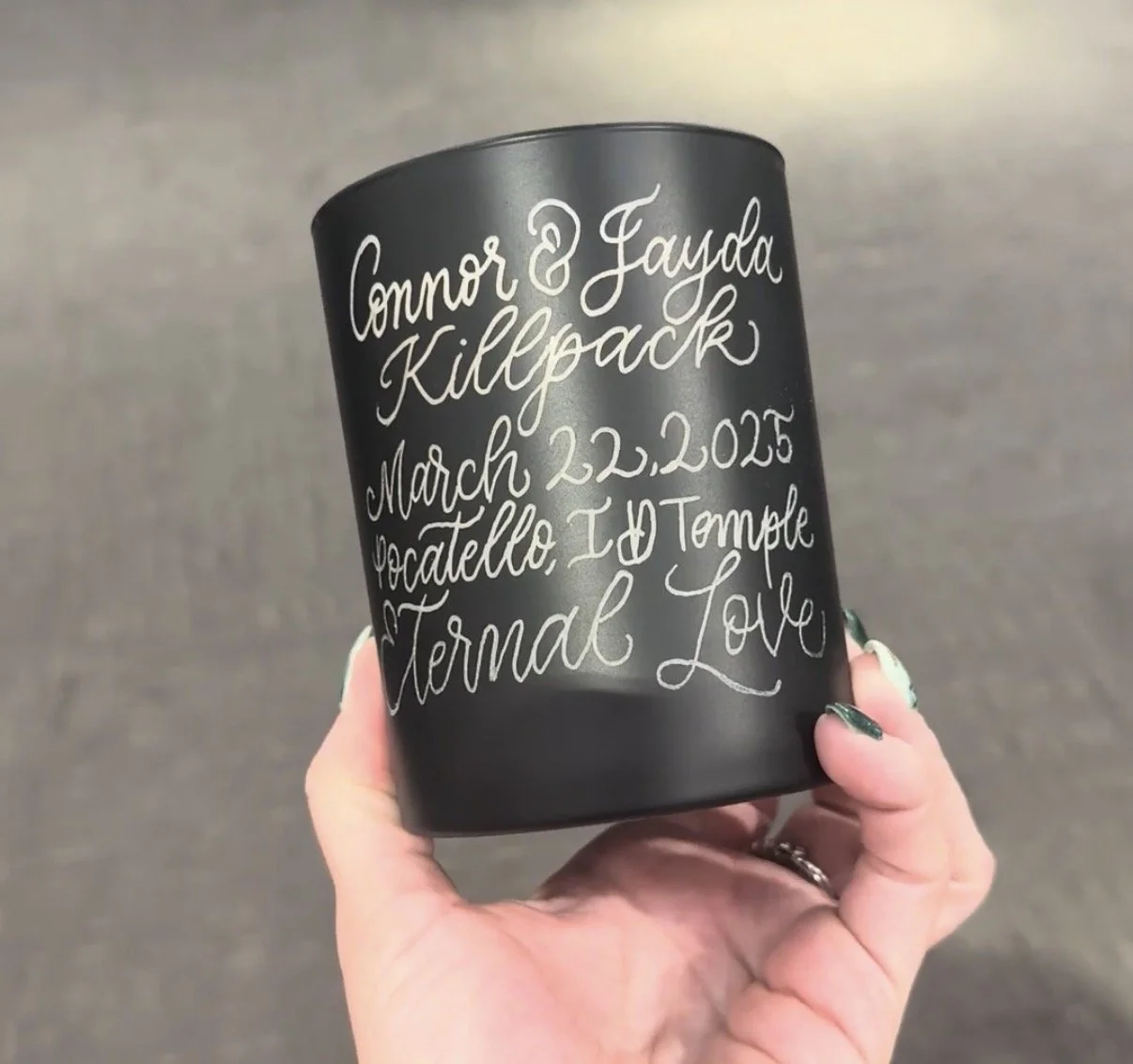 Engraving is especially popular on glass, metal, and even some plastics. Think fragrance bottles, liquor and spirits, candles, keychains, headphones, cosmetics, and so much more.
